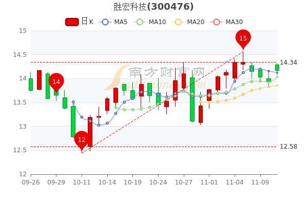 11月11日收盘消息,胜宏科技最新报价14.170元,3日内股价上涨0.99%,市盈率为16.48。