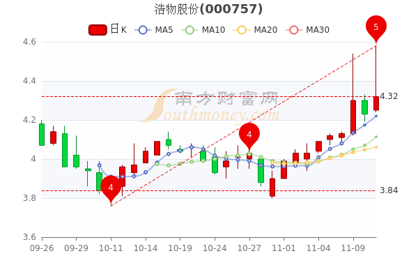 11月11日消息,浩物股份5日内股价上涨4.63%,今年来涨幅下跌-9.49%,最新报4.320元,市盈率为33.23。
