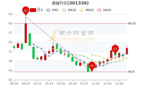 11月11日消息,趣睡科技开盘报价50.2元,收盘于52.140元。3日内股价上涨3.05%,总市值为20.86亿元。