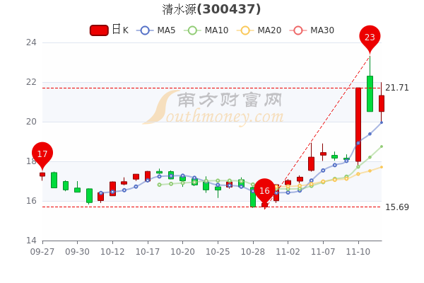 11月14日盘后消息,清水源最新报价21.320元,涨3.95%,3日内股价下跌1.83%;今年来涨幅下跌-21.44%,市盈率为53.13。