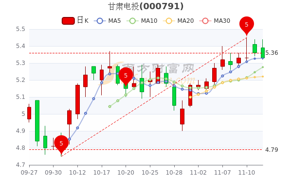 11月14日盘后最新消息,甘肃电投7日内股价上涨1.13%,截至下午3点收盘,该股跌0.56%报5.330元 。