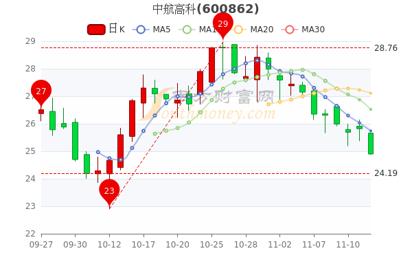 11月14日消息,中航高科7日内股价下跌9.04%,最新报24.900元,市盈率为59.29。