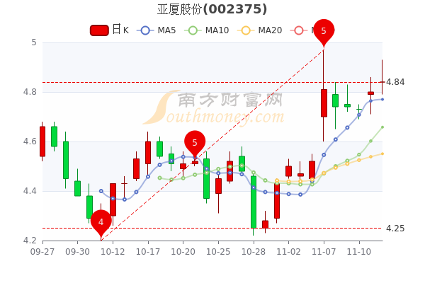 11月14日晚间复盘消息,亚厦股份开盘报价4.84元,收盘于4.840元,成交额1.15亿元。