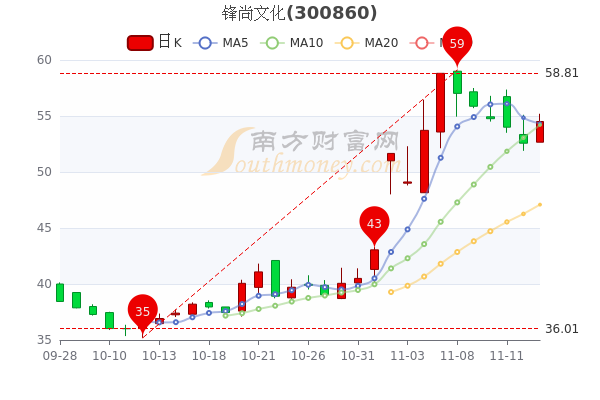 11月15日锋尚文化3日内股价上涨0.94%,截至15时收盘,该股报54.510元涨3.69%,成交1.73亿元,换手率7.64%。