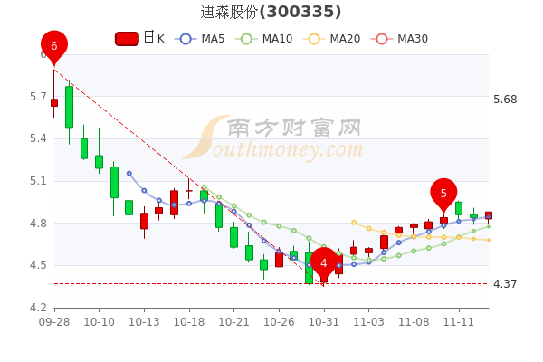 11月15日盘后消息,迪森股份开盘报价4.83元,收盘于4.880元,成交额8935.77万元。