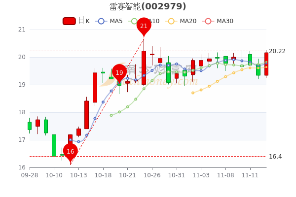 11月15日盘后消息,雷赛智能收盘于20.160元,涨4.19%。今年来涨幅下跌-30.46%,总市值为62.31亿元。