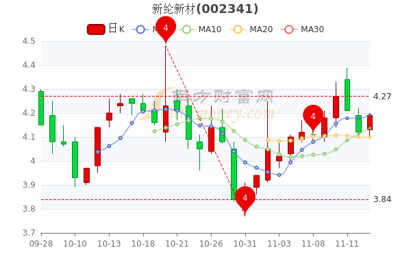 新纶新材(002341)涨1.7%,报4.190元,成交额4512.65万元,换手率1.13%,振幅涨1.7%。