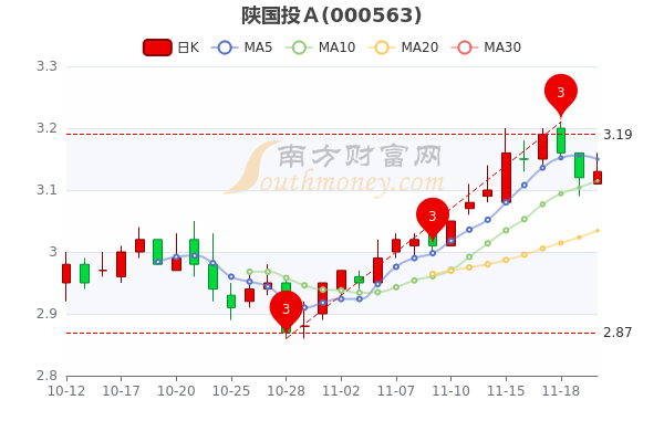 11月22日晚间复盘消息,陕国投A最新报价3.130元,3日内股价下跌0.96%,市盈率为16.95。