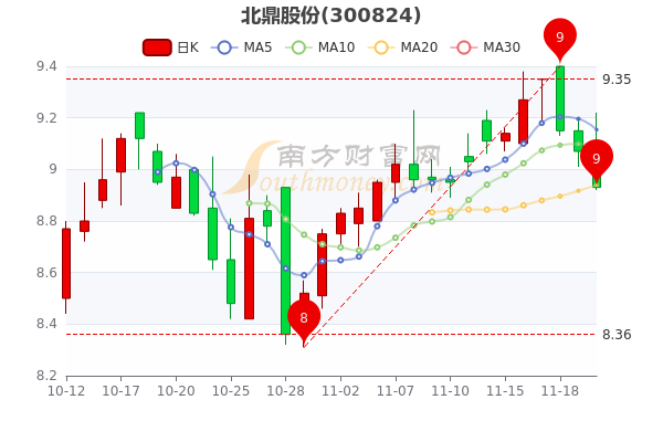 11月22日晚间复盘消息,北鼎股份最新报8.930元,跌1.54%。成交量140.28万手,总市值为29.14亿元。