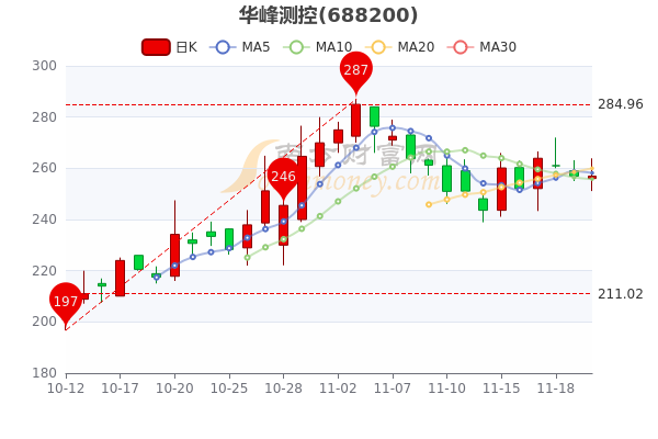 11月22日消息,华峰测控开盘报价256元,收盘于256.940元,跌0.01%。当日最高价263.88元,最低达251.1元,总市值234亿。