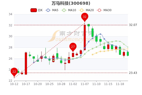 11月22日晚间复盘消息,万马科技最新报价26.540元,3日内股价下跌0.64%,市盈率为884.67。