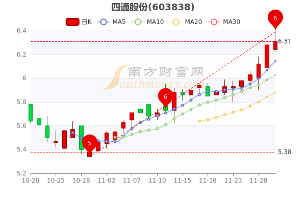 11月30日消息,四通股份截至10时34分,该股涨0.48%,报6.270元,5日内股价上涨5.57%,总市值为20.07亿元。
