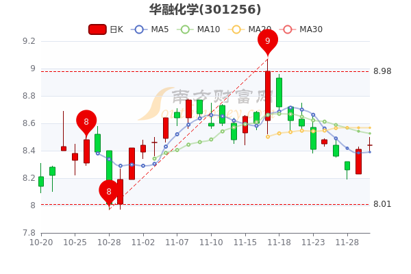截止10时43分,华融化学报8.450元,涨0.36%,总市值40.56亿元。