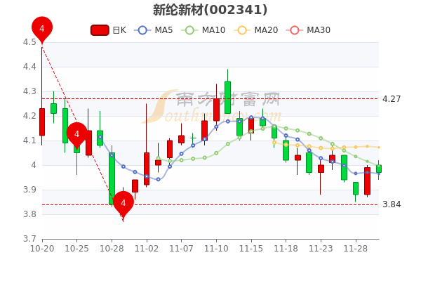 11月30日消息,新纶新材今年来涨幅下跌-40.1%,最新报3.970元,跌0.5%,成交额985.84万元。