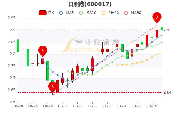 11月30日消息,日照港开盘报2.91元。换手率0.17%,振幅涨0.35%。