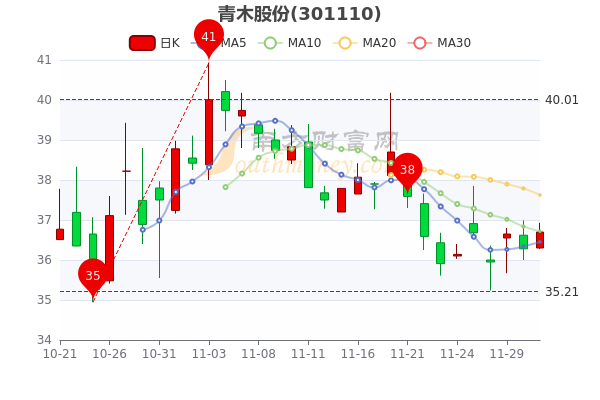 12月1日收盘消息,青木股份开盘报价36.3元,收盘于36.700元,成交额1369.15万元。
