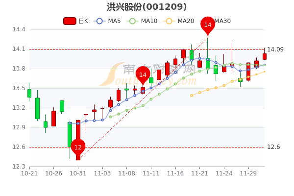 12月1日盘后消息,洪兴股份最新报价14.030元,涨0.79%,3日内股价上涨1%;今年来涨幅下跌-97.08%,市盈率为11.05。