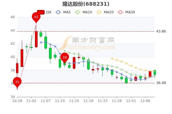 12月8日尾盘最新消息,隆达股份昨收37.84元,截至14时42分,该股跌1.32%报37.170元 。
