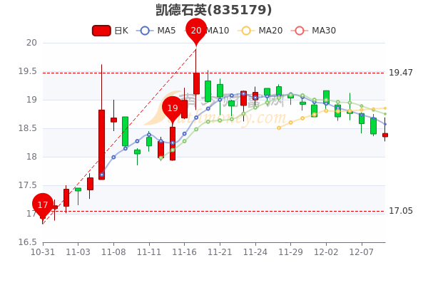 12月9日,凯德石英开盘报价18.35元,收盘于18.410元,涨0.05%。今年来涨幅下跌-10.76%,总市值为13.81亿元。