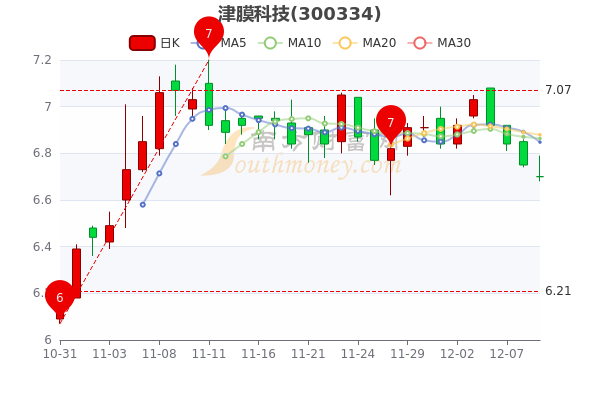 12月9日津膜科技(300334)开盘报6.7元,截至下午三点收盘,该股报6.700元跌0.74%,成交1420.13万元,换手率0.7%。