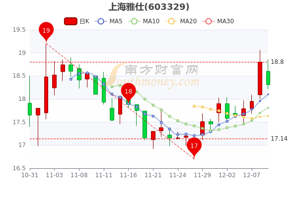 12月9日收盘消息,上海雅仕最新报价18.310元,跌2.61%,3日内股价上涨1.97%;今年来涨幅上涨16.66%,市盈率为20.34。