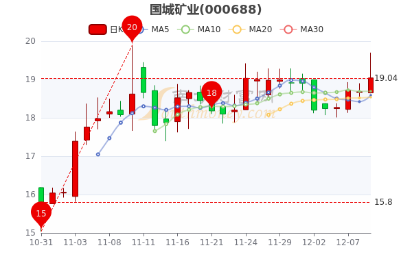 12月9日国城矿业(000688)开盘报18.65元,截至15点,该股报19.040元涨1.93%,成交2.8亿元,换手率1.31%。