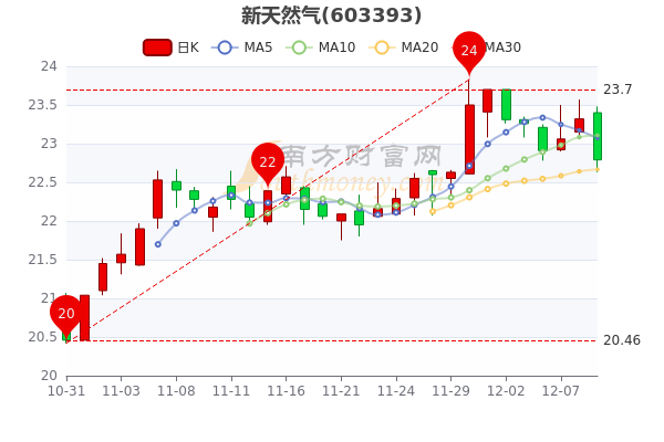12月9日收盘消息,新天然气(603393)跌2.27%,报22.790元,成交额1.66亿元。