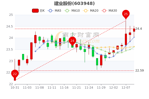 12月9日收盘消息,建业股份开盘报价24.28元,收盘于24.400元,成交额3132.07万元。