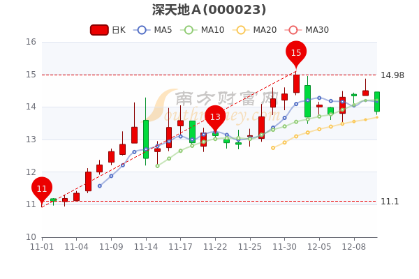 12月12日消息,深天地A收盘于13.860元,跌4.55%。7日内股价上涨1.23%,总市值为19.23亿元。