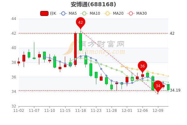 12月13日消息,安博通开盘报价35.02元,收盘于34.240元,跌1.89%。今年来涨幅下跌-83.35%,市盈率24.28。