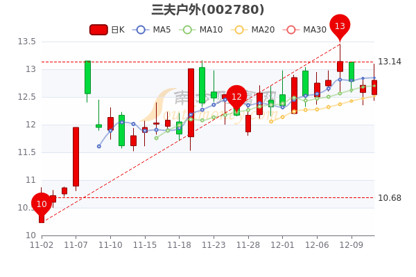 12月13日盘后最新消息,三夫户外7日内股价上涨2.19%,截至下午三点收盘,该股涨0.71%报12.800元 。