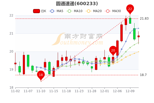 12月13日消息,圆通速递5日内股价下跌2.92%,该股最新报20.880元涨0.97%,成交3.07亿元,换手率0.43%。