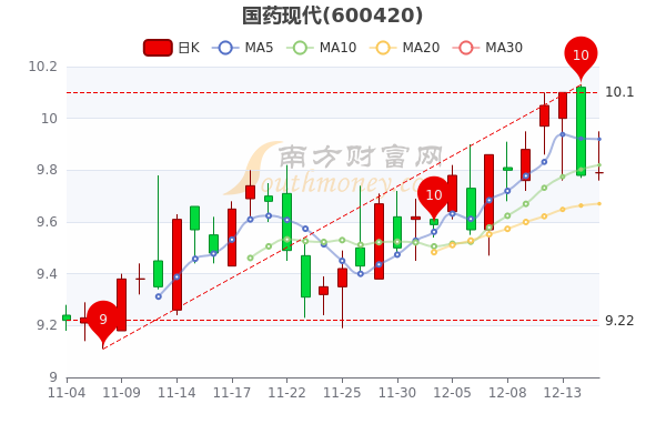 12月15日消息,国药现代开盘报9.79元,截至10时53分,该股涨0.1%,报9.890元。当前市值101.57亿。