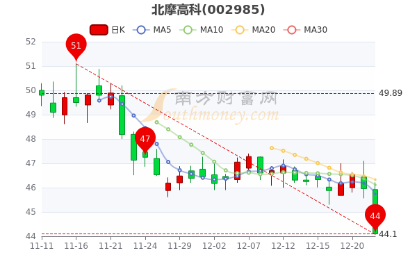 12月22日尾盘消息,北摩高科今年来涨幅下跌-174.15%,截至14时37分,该股跌4.05%,报44.210元,总市值为146.71亿元,PE为26.79。