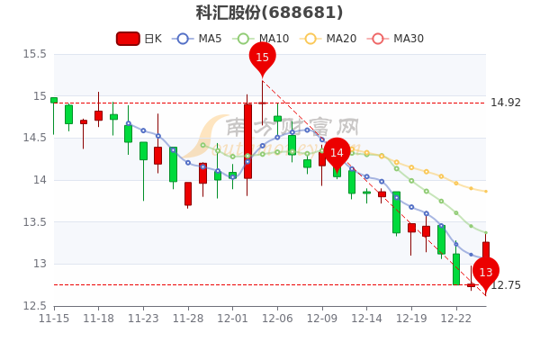 科汇股份(688681)涨3.92%,报13.380元,成交额612.46万元,换手率0.71%,振幅涨4.86%。