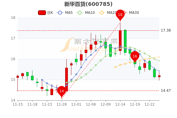12月26日尾盘最新消息,新华百货7日内股价下跌7.8%,截至14时45分,该股涨0.46%报15.240元 。
