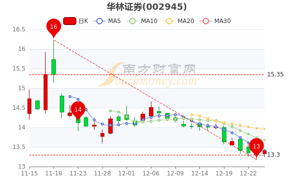 12月26日华林证券3日内股价上涨0.45%,截至下午3点收盘,该股报13.350元涨0.83%,成交3766.72万元,换手率0.1%。