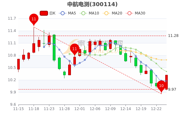 12月26日消息,中航电测开盘报价9.97元,收盘于10.320元。5日内股价下跌0.97%,总市值为60.97亿元。