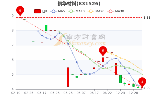 12月30日凯华材料3日内股价下跌1.95%,截至15点,该股报4.110元涨0.73%,成交412.39万元,换手率4.77%。