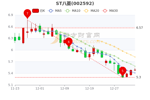 1月4日消息,ST八菱收盘于5.490元,涨0.18%。7日内股价下跌3.1%,总市值为15.55亿元。
