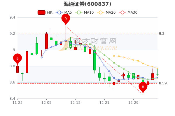 1月6日消息,海通证券7日内股价上涨0.46%,最新报8.700元,市盈率为8.88。