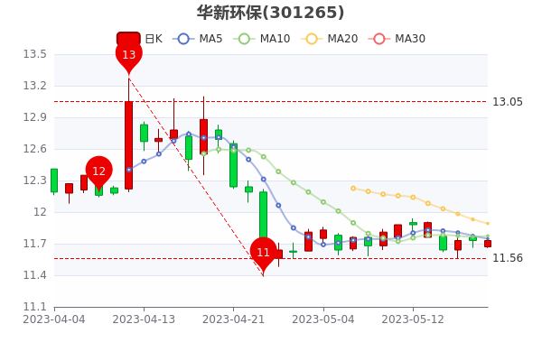 5月19日收盘消息,华新环保最新报11.730元,成交量104.04万手,总市值为35.54亿元。
