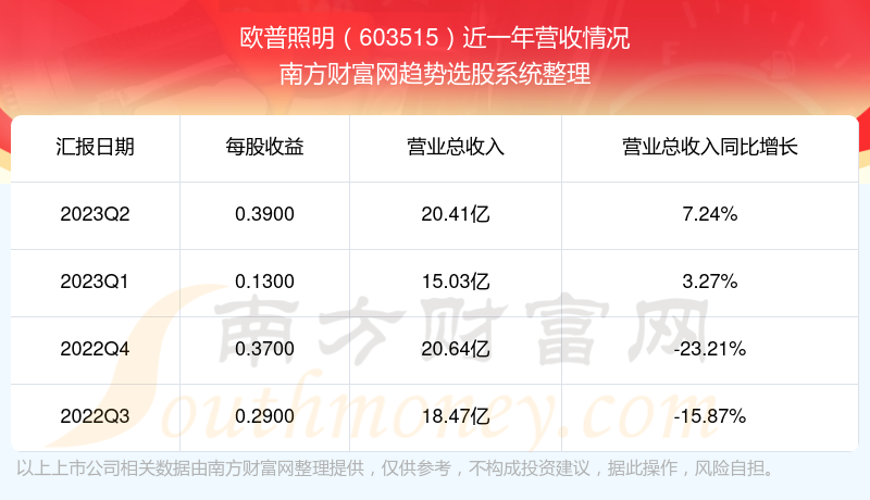 欧普照明股票近一年营收情况如下表: