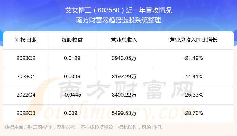 艾艾精工股票近一年营收情况如下表: