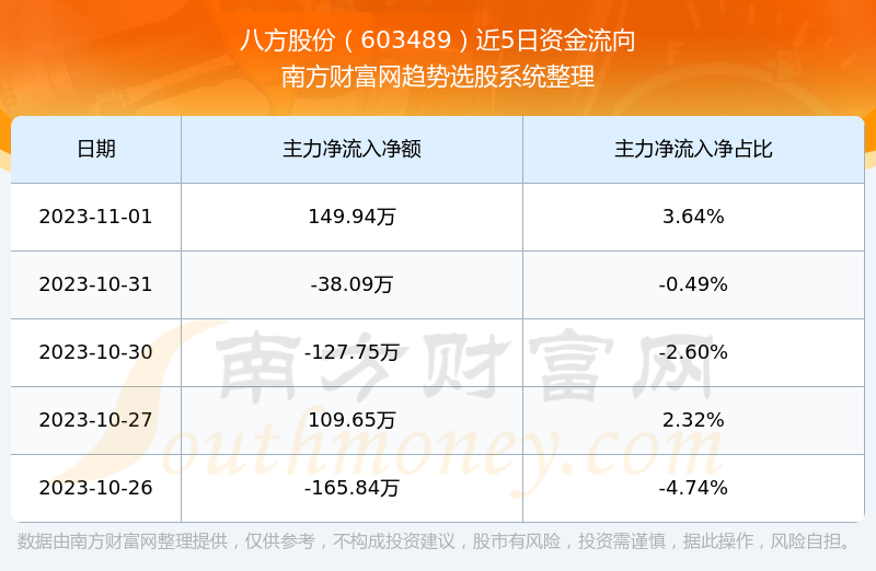 二、八方股份(603489)近期盘面、资金面情况