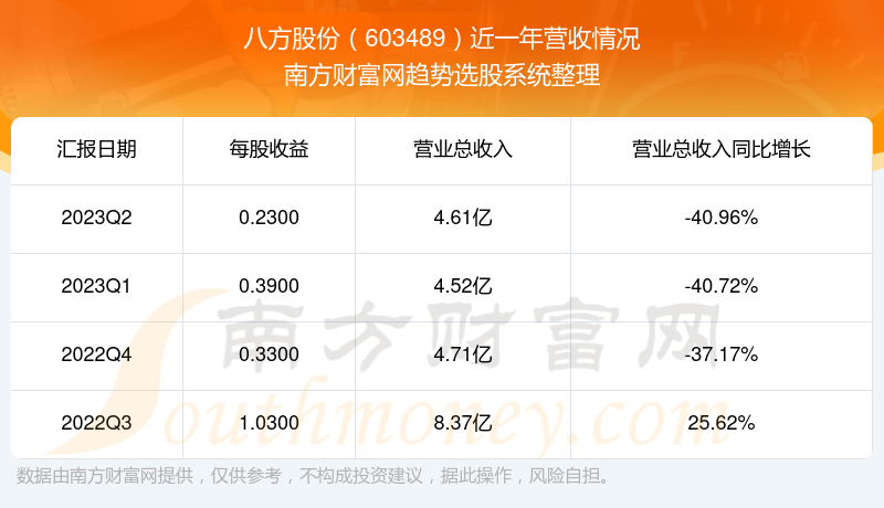 一、八方股份(603489)股票营收情况