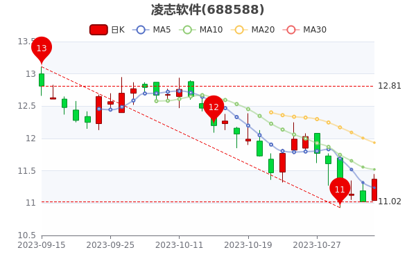 11月3日收盘消息,凌志软件7日内股价下跌5.8%,最新涨3.18%,报11.370元,换手率1.34%。