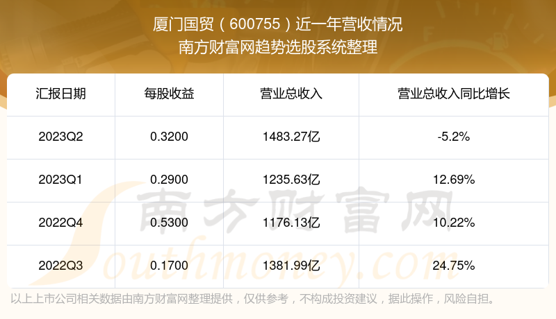 厦门国贸股票近一年营收情况如下表: