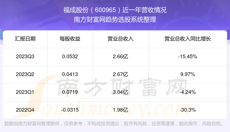 按照南方财富网趋势选股系统统计,该股所属板块为农牧饲渔板块,该板块共有79只股票,福成股份2023第三季度营收在该板块中排名为第63名,该板块2023第三季度营收排名前十的股票如下表: