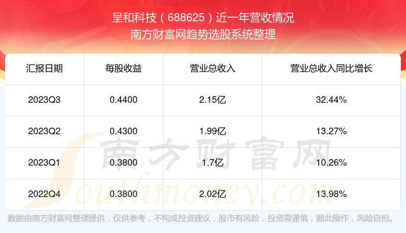 呈和科技股票近一年营收情况如下表: